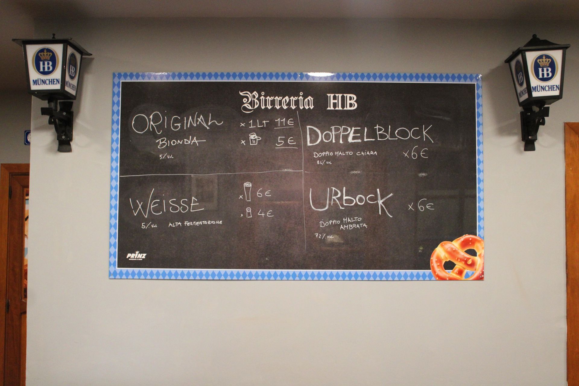 Tavoli rustici ed uno stile puramente bavarese, dove ne fa da padrona la Birra HB - Hofbrau Munchen che accompagni con Taglieri, Pinse in vari gusti e Crostoni, magari mentre guardi sul maximum schermo i tuoi eventi sportivi preferiti.